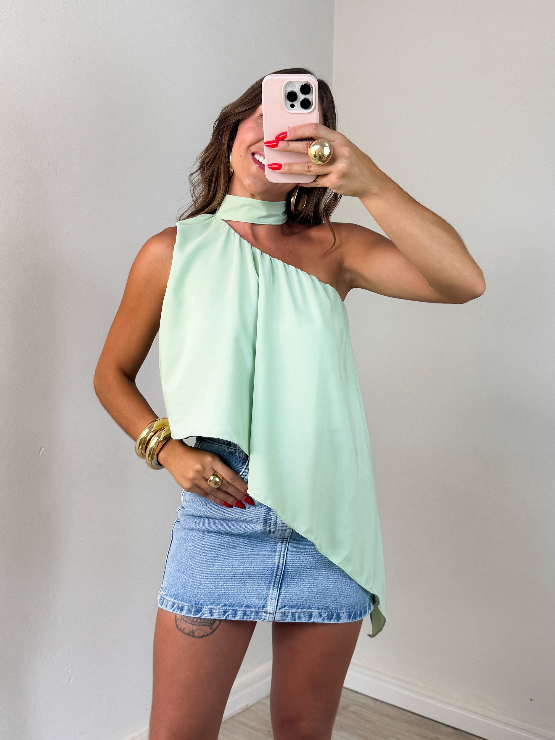 Blusa fluida assimétrica verde