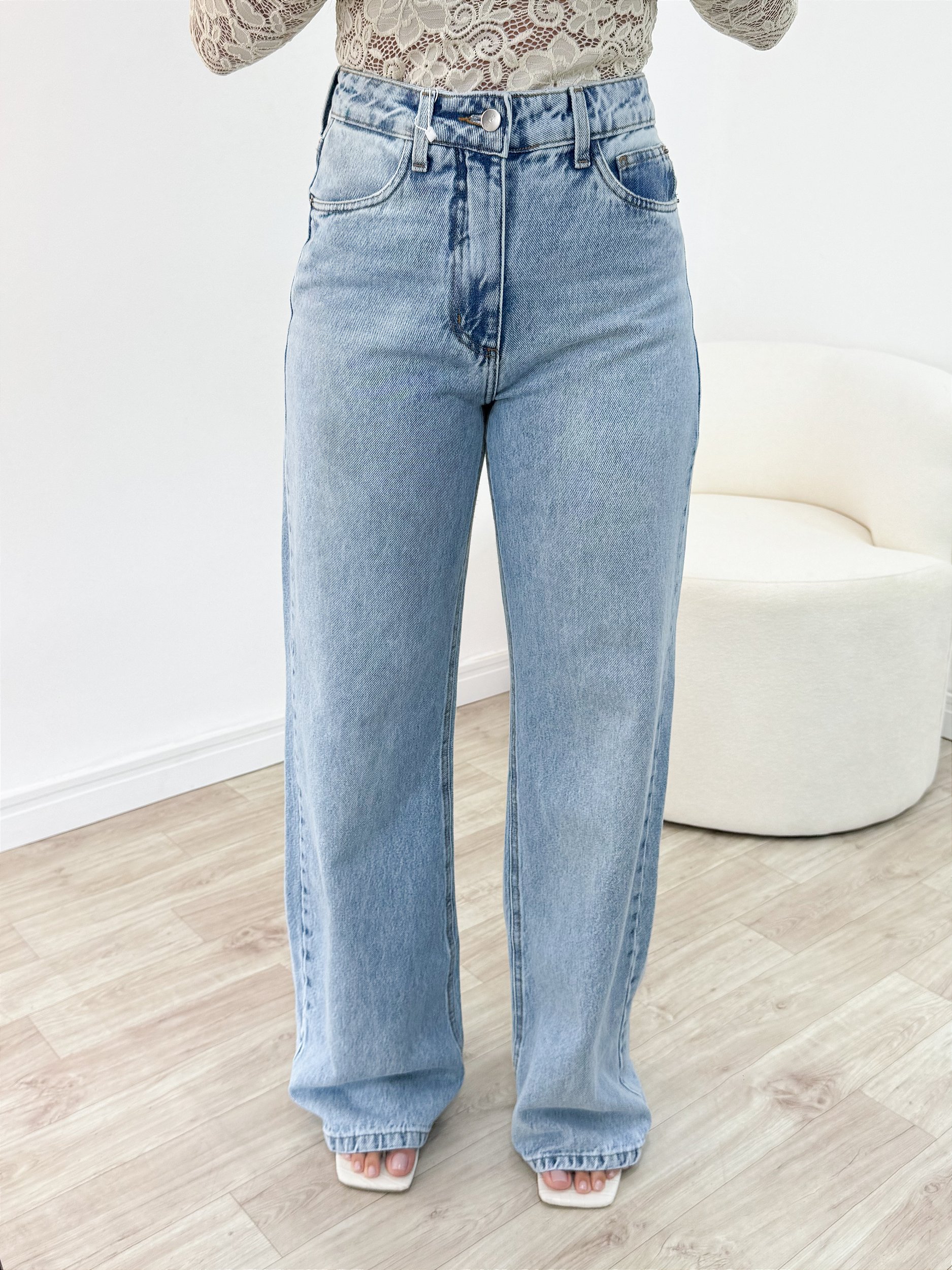 calça wide leg em lavagem média que é aquele clássico nada óbvio. modelagem reta e ampla desde o quadril, alonga a silhueta e entrega um visual moderno sem esforço. a lavagem média traz versatilidade — perfeita pra usar do dia à noite, do salto ao tênis. jeans atemporal, confortável e indispensável no closet.