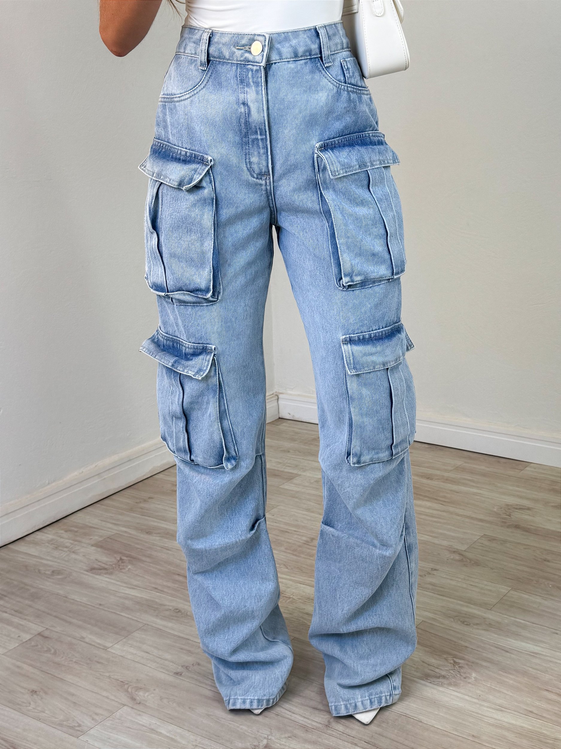 Modelagem utilitária com quatro bolsos funcionais, unindo o visual despojado do cargo à versatilidade do jeans. Ideal para compor produções práticas e cheias de estilo.