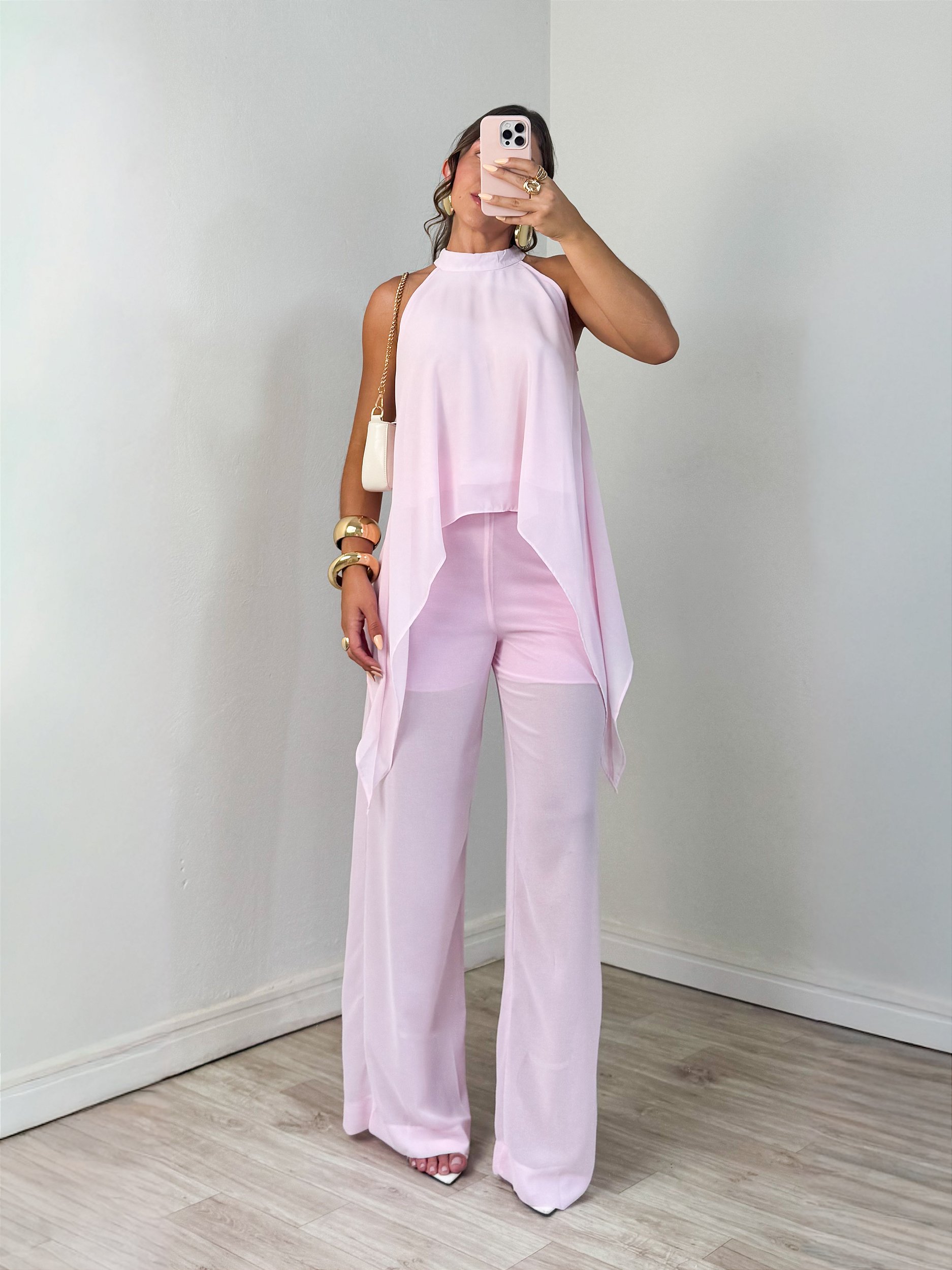 Um conjunto de calça e blusa em poliéster, bem solto e super confortável, perfeito para quem ama praticidade com estilo. O caimento leve traz movimento, enquanto o toque macio garante aquele conforto ideal para o dia a dia. Um look moderno, descomplicado e pronto para qualquer ocasião.