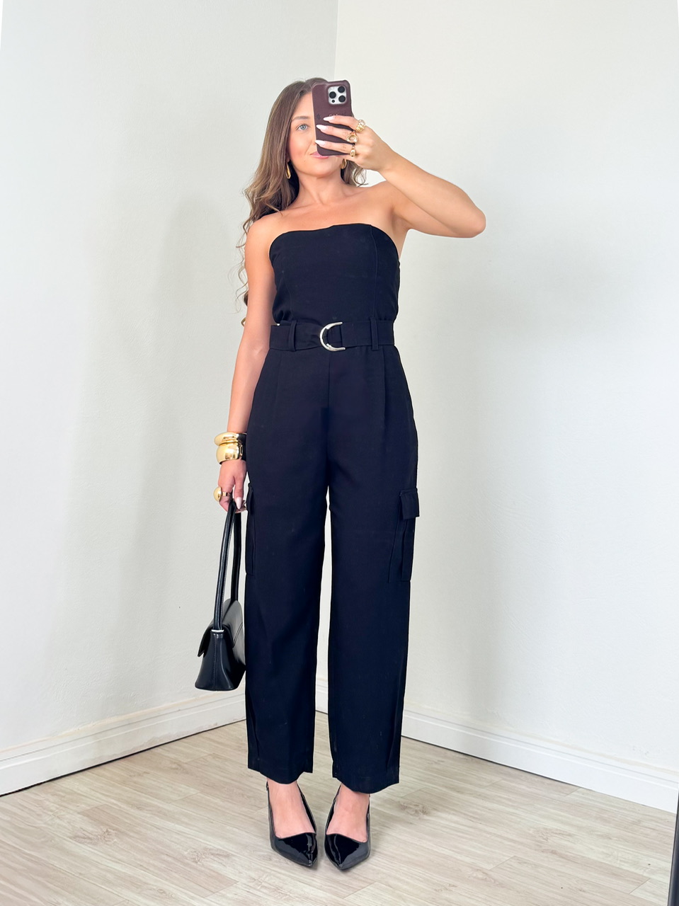 Macacão tomara que caia em tecido tipo linho, com caimento leve e toque sofisticado. Acompanha cinto e bolsos discretos estilo cargo, unindo elegância e modernidade em um só look. Possui bolsos laterais, elástico e zíper para maior segurança & acompanha o cinto.