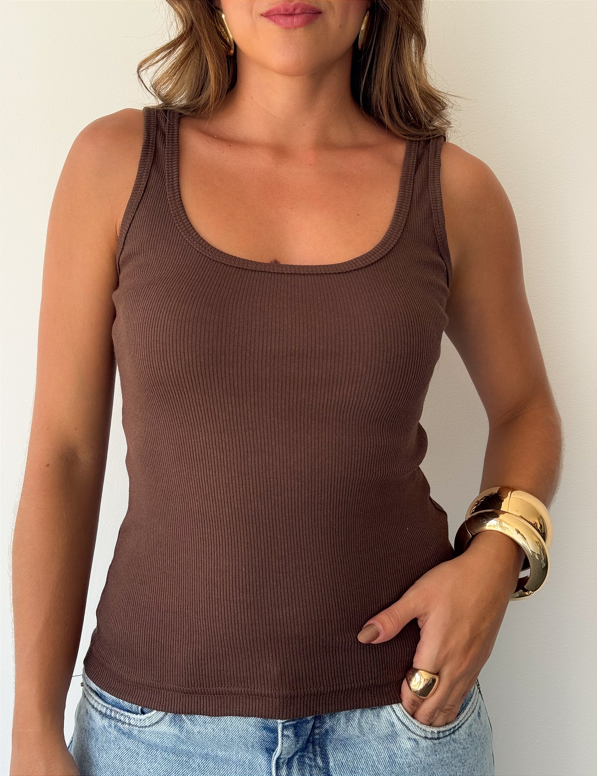 Regata Decote Quadrado Marrom