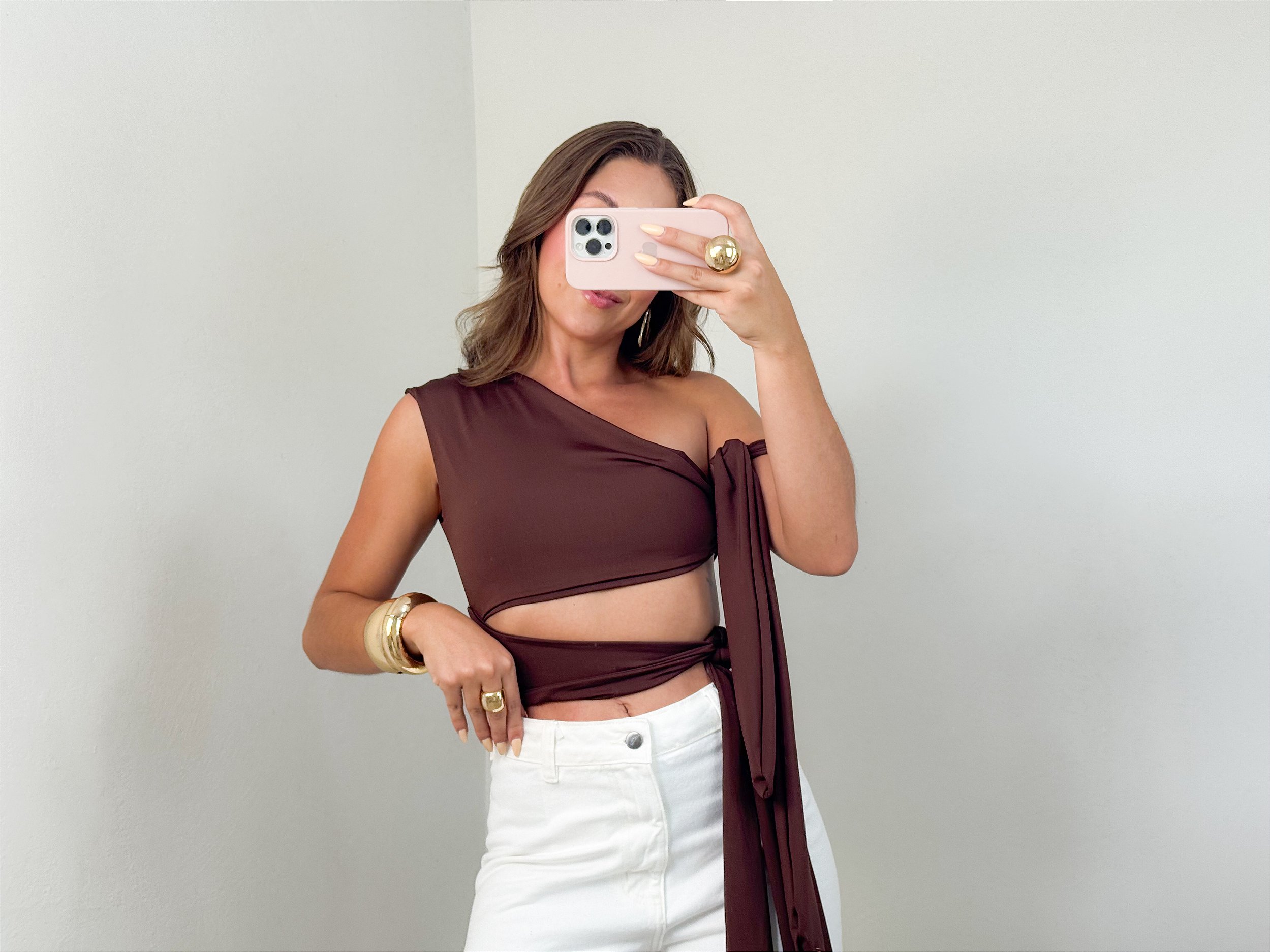 Top de um ombro só, com amarração lateral. Fashionista e sofisticado, garante looks modernos e cheios de estilo para as amantes da autenticidade.