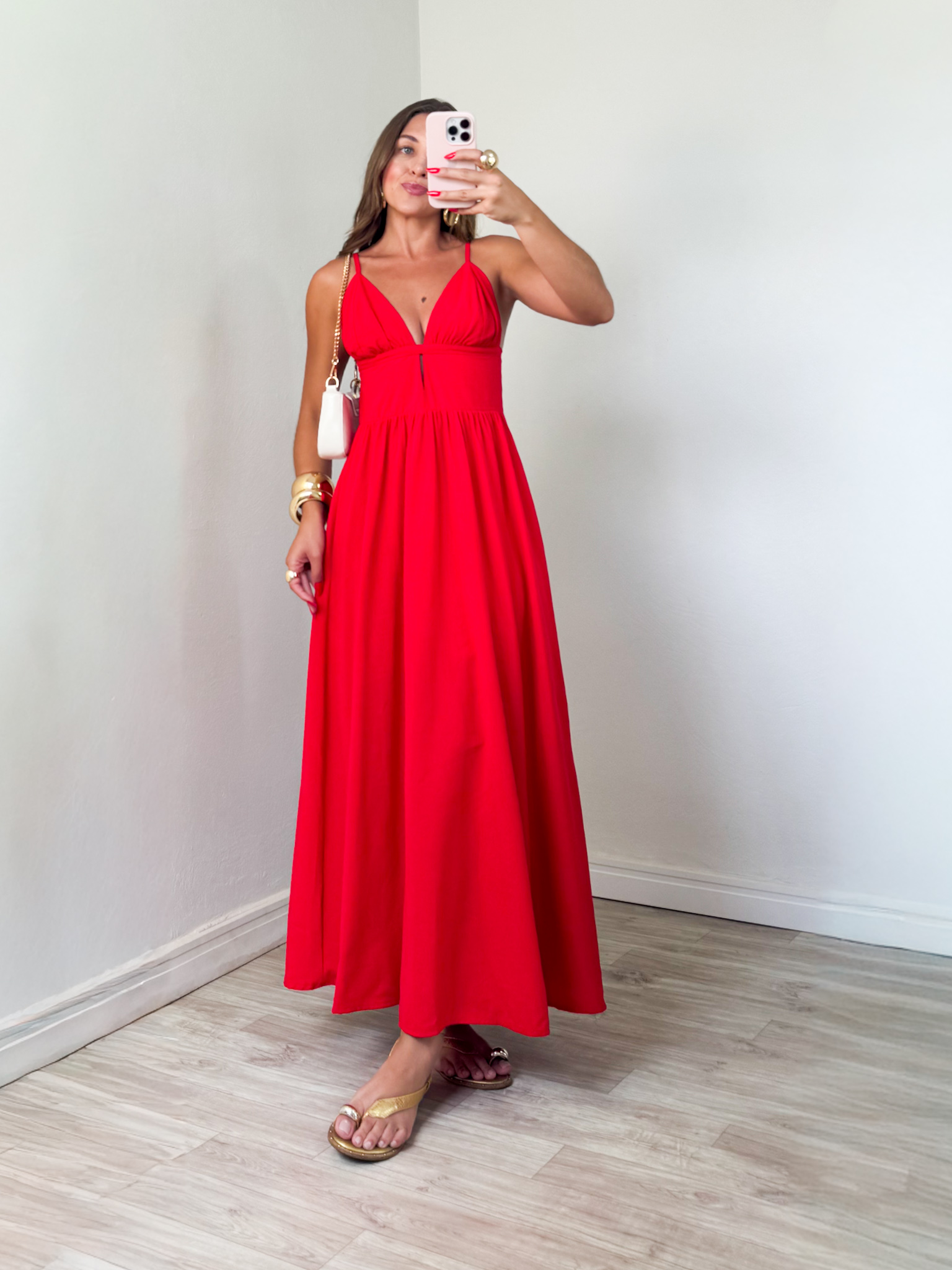 Encante-se com nosso vestido longo rodado, que traz um decote em V elegante e alcinhas reguláveis para um ajuste perfeito. A abertura nas costas adiciona um toque de charme e sofisticação, tornando este modelo ideal para eventos especiais. Confeccionado em tecido leve, ele proporciona conforto e fluidez, garantindo que você se sinta maravilhosa em qualquer ocasião!