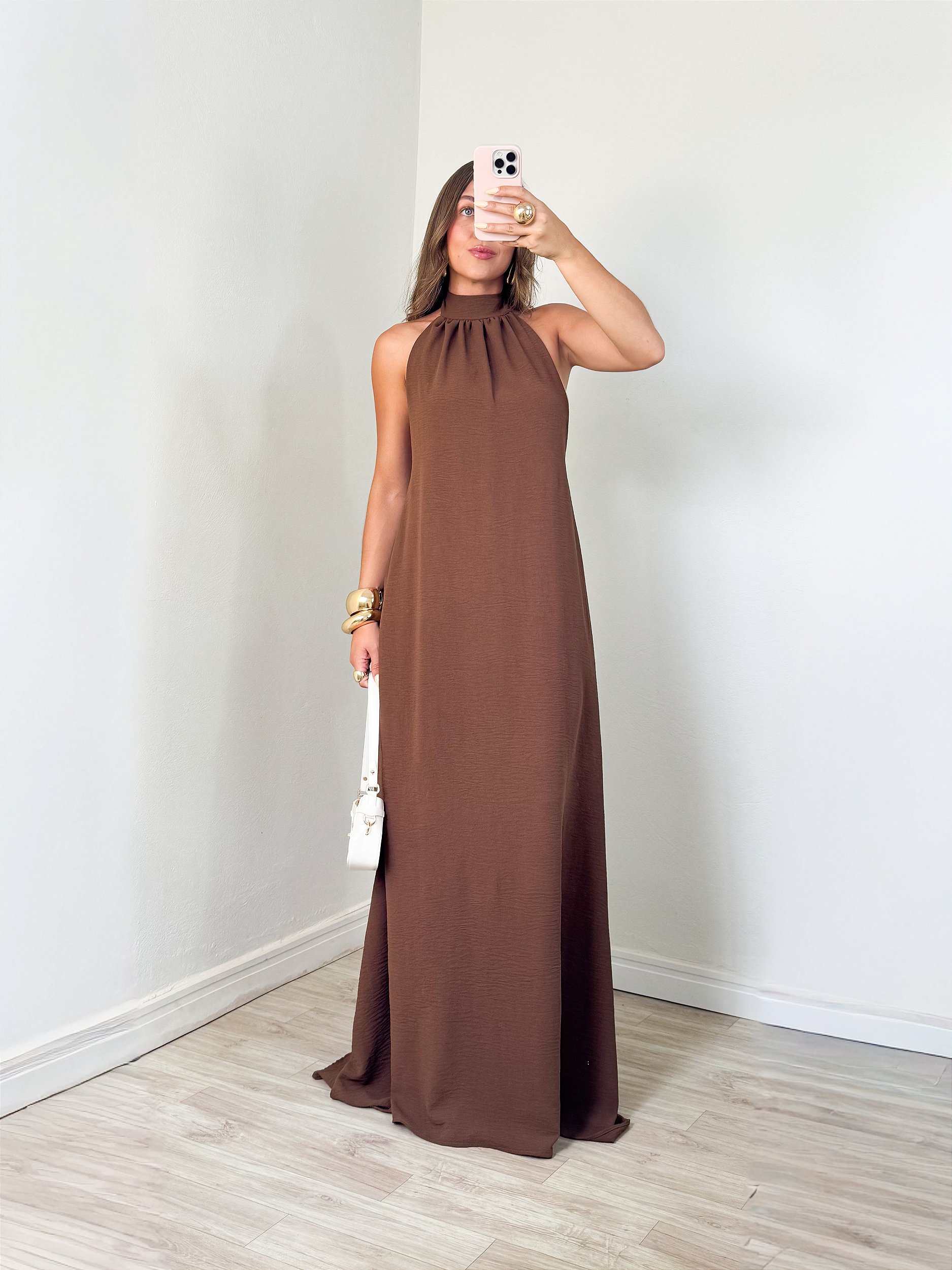 Descubra a elegância do nosso vestido longo em tecido fluido, perfeito para ocasiões especiais. Com amarração delicada no pescoço e costas nuas, este modelo combina sofisticação e sensualidade. Seu caimento leve garante conforto e estilo, ideal para brilhar em qualquer evento. Adicione um toque de glamour ao seu guarda-roupa!
