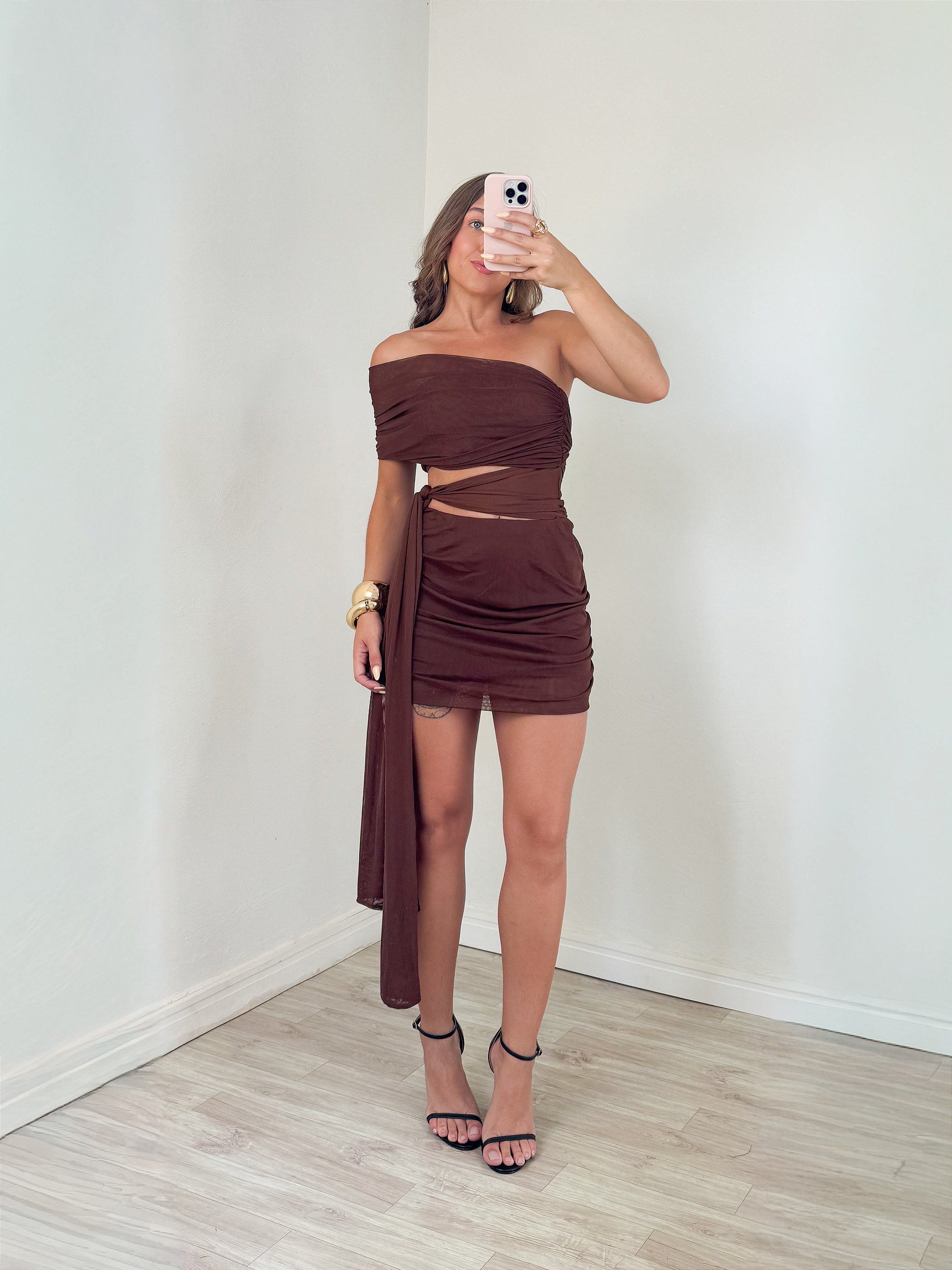 Um vestido curto de tule simplesmente encantador, com recortes estratégicos que valorizam a silhueta com leveza e modernidade. O tule delicado cria um ar feminino e sofisticado, enquanto os detalhes recortados dão aquele toque atual e irresistível. Uma peça perfeita para quem ama brilhar com estilo e presença.
