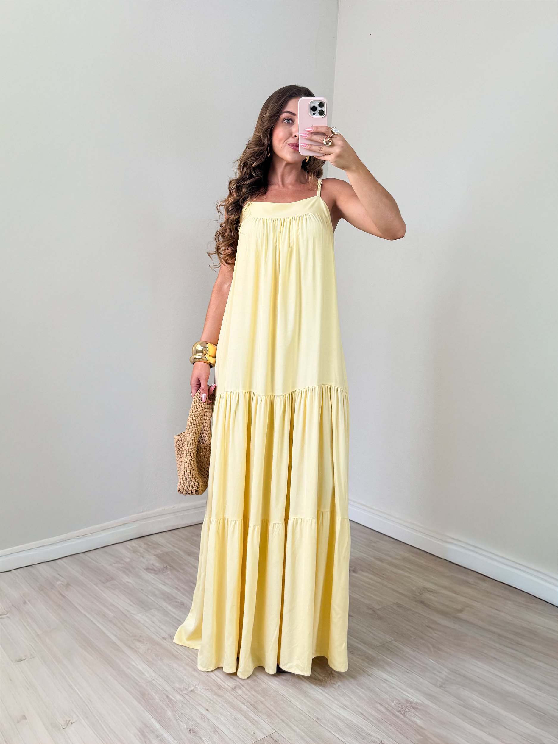 Vestido longo soltinho — confeccionado em poliéster leve e fluido, esse vestido encanta pelo caimento impecável e o toque suave do tecido. Com modelagem ampla e movimento delicado, ele traz uma elegância natural, perfeita para dias ensolarados ou ocasiões especiais. Versátil e cheio de charme, é aquele tipo de vestido que une conforto, leveza e um visual deslumbrante.